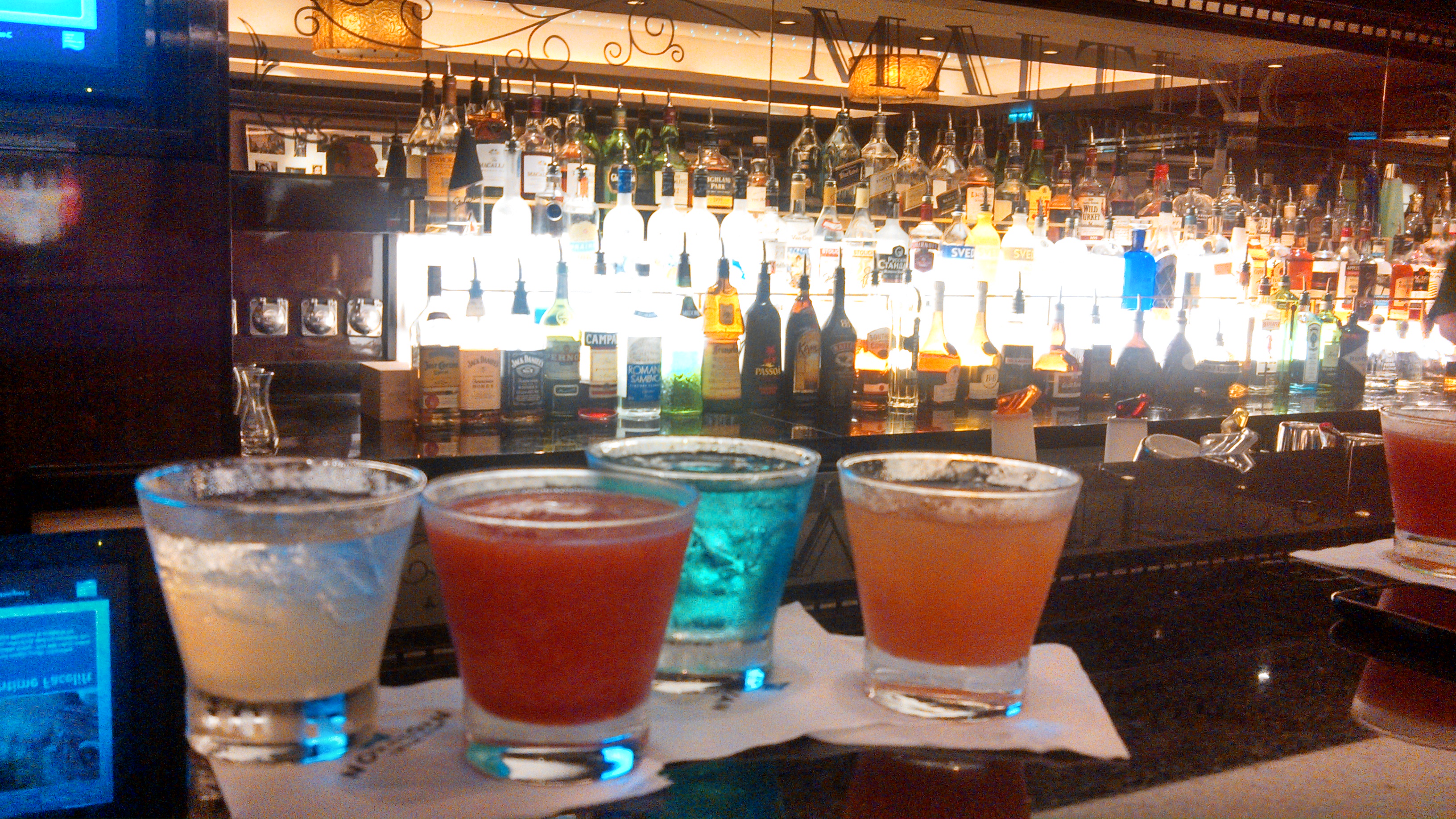Adult activities: New Years Eve was a great dance party with the DJ and I enjoyed the White Hot Party as well. Others in our group thought all of the music played every night was one style and did not suit them. They were not wrong…I just happen to like any dance music. Give me a beat and I’m good. Daily Karaoke turned into Lets Bring our Little Kids to Sing and be Cute each night. And the evening club dance scene was pretty empty – I’m guessing due to the music selection – even with 4000 people on the ship! We’re not big partiers but do like something fun in the evenings. Besides this, the daytime adult activities also missed the mark a little bit. Nothing of real interest. All of the adults in our group (remember the span of ages – 20’s – 50’s) agreed there weren’t too many day or evening activities that were great for us once we had seen all the shows. We did do the Margarita Tasting one afternoon at Maltings and that bartender is a fantastic personality.