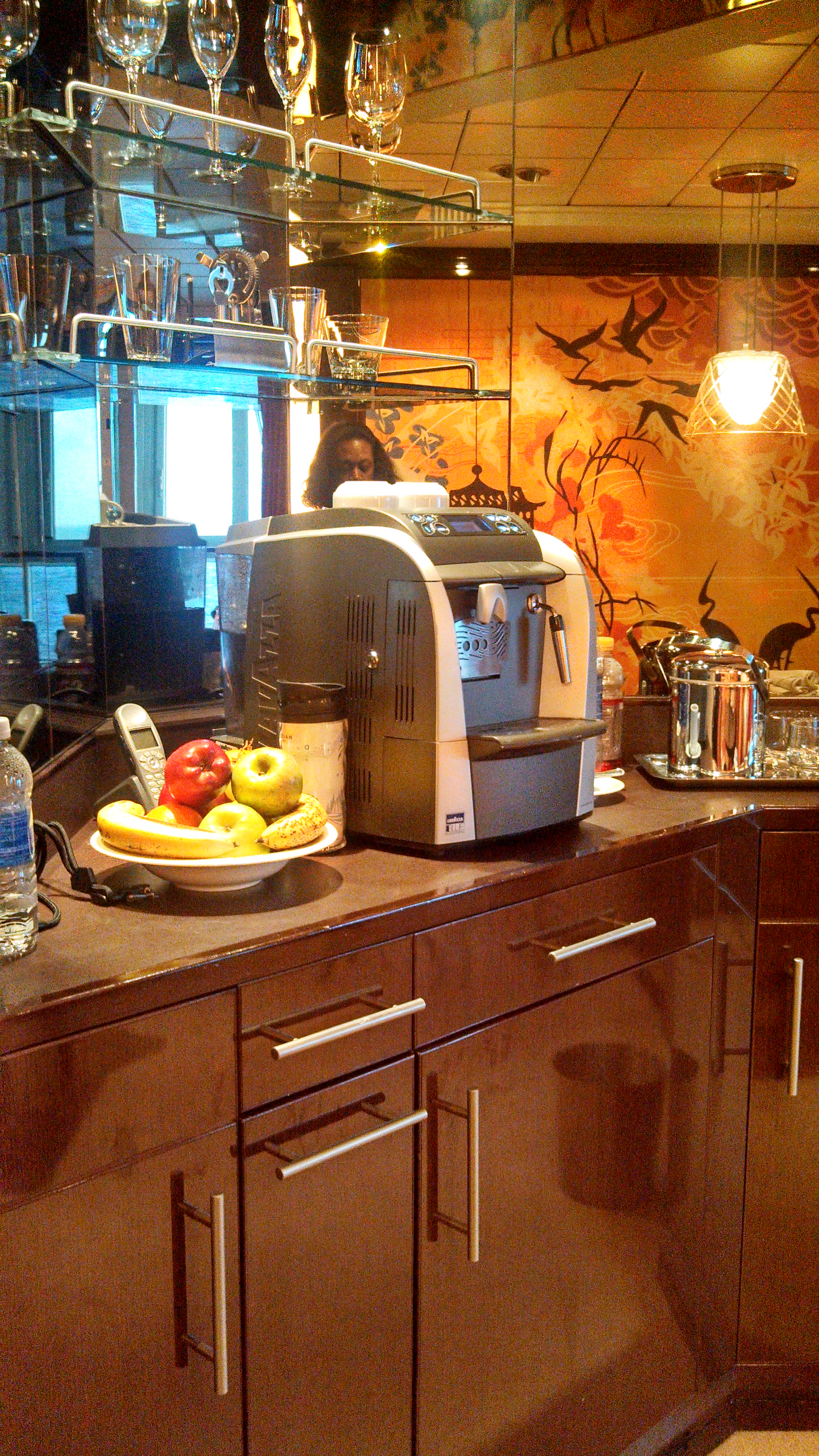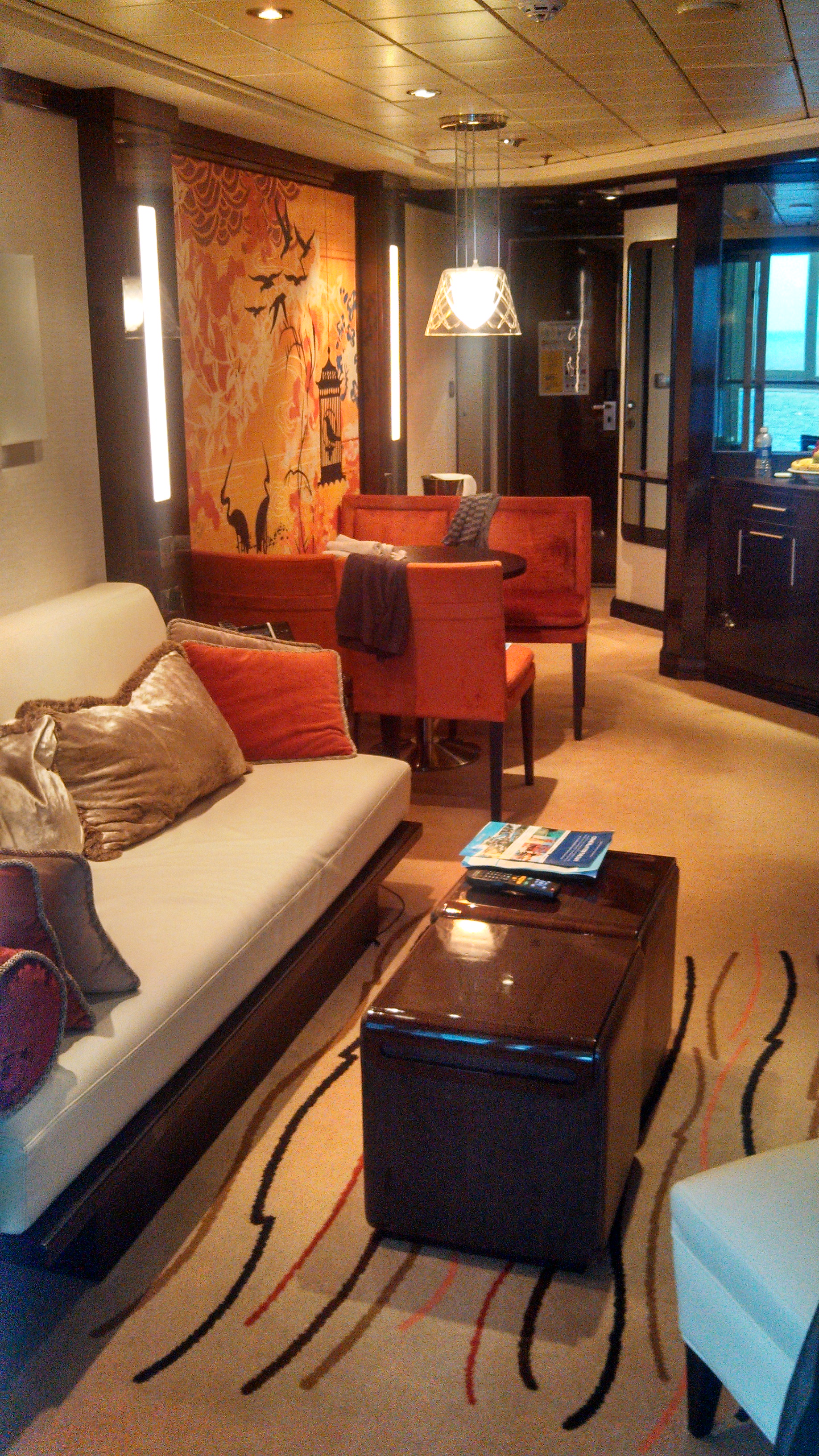 Moving on from bathroom talk, as a whole, the suite was well laid out and a comfortable space for us all for the week. Not too big, not too small. We used the Lavazza machine several times daily for tea, espresso & coffee and really enjoyed having it. There are 4 thermostats and mood lighting settings for your comfort and enjoyment. The furnishings and finishes feel upscale and there are little extras like fresh flowers, fresh fruit and afternoon treats delivered each day. The Haven concept is well executed as guests are treated as if they have checked into a fine hotel.