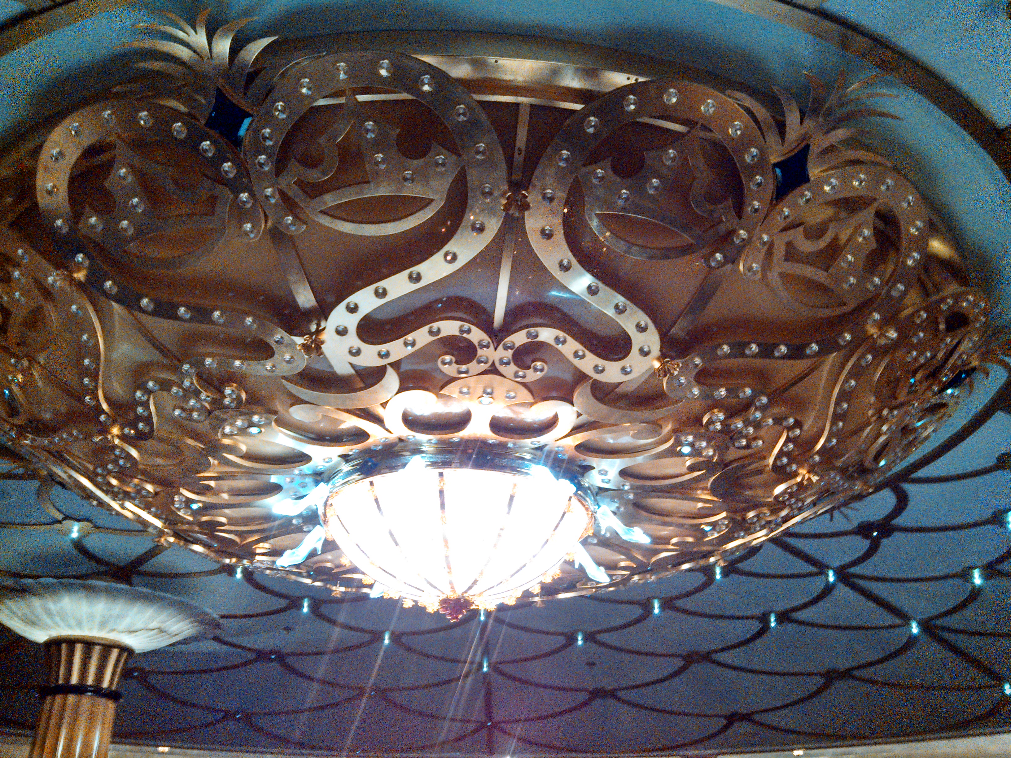 The Disney Dream is what you’d probably call very classic. The folks at Disney wanted their ships to be a throw back to old school luxury liner cruise ships. The art deco feeling hallways and atrium really tell that story. It’s a beautiful ship. The multi-story central atrium, where all of the character meet and greets happen, is grand and if you look carefully at all of the railings and other iron work you just might find some classic Disney characters worked in. On the main level (Deck 4), there are also night club areas for both adults only and one for family fun, along with a café area, a movie theatre and show venue.