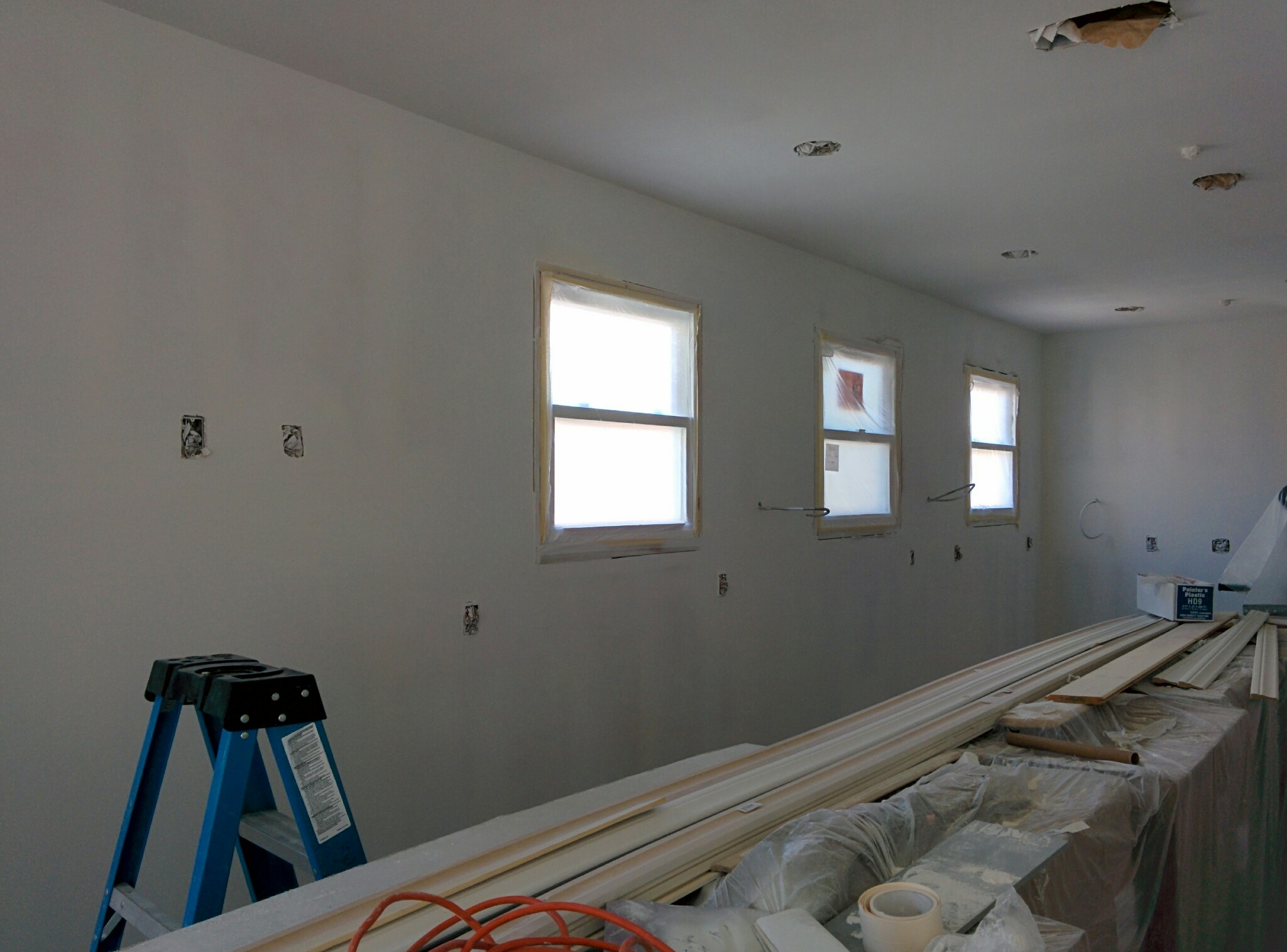 A walk through of the Brill Construction zone was quite exciting today BECAUSE…. There are walls. We are finally able to see the spaces coming to life and shaping up. Ok, so it’s still early yes. But there are walls. And that is great progress. And I can probably stop calling it a construction zone now that there are walls. I’ve chosen 3 paint colors to have sampled so the homeowners can see which they like best. They can look at them in different light, choose and later this week, we’ll have our first glimpse of color on these new walls.