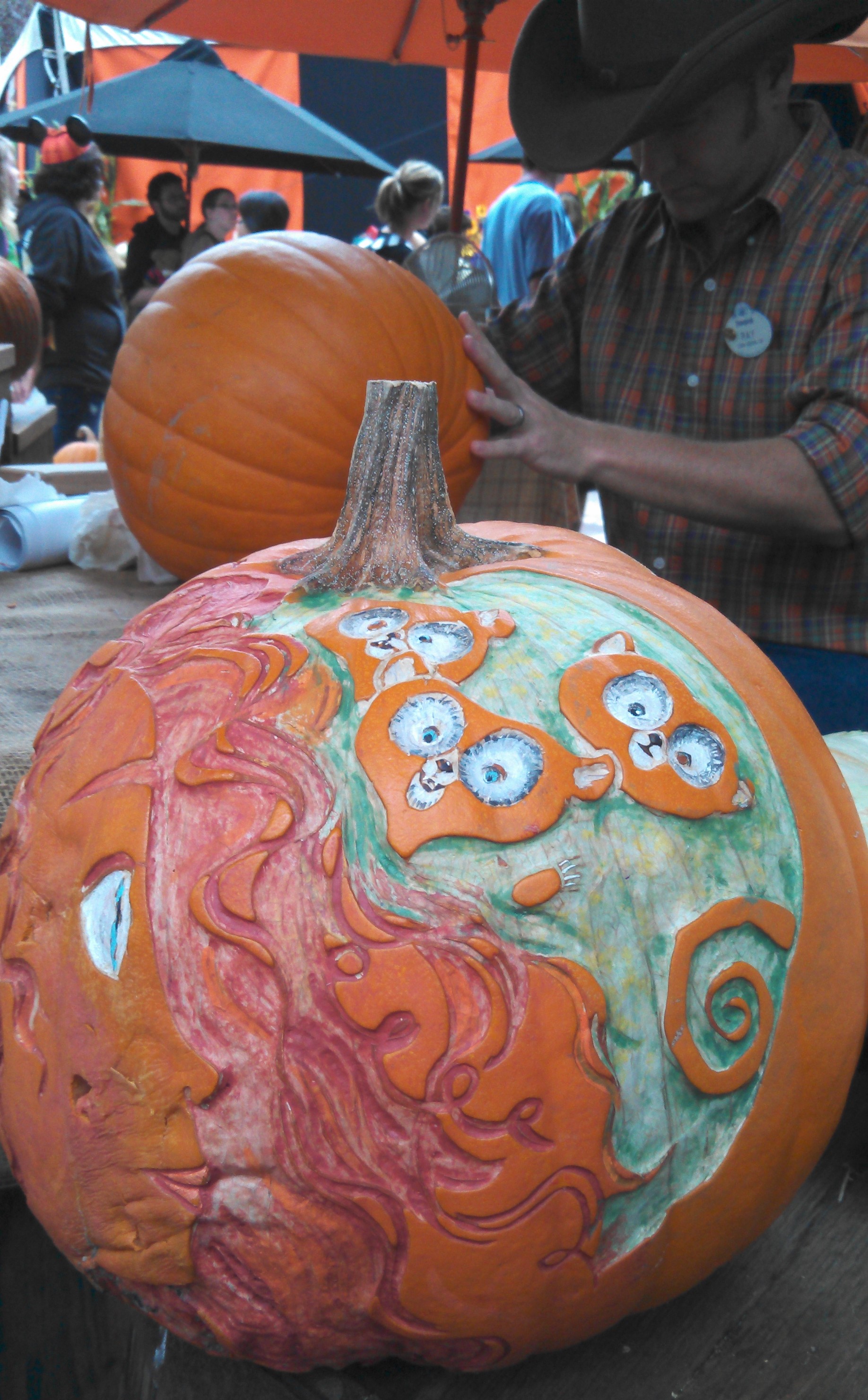 There are master pumpkin carvers doing spectacular things with pumpkins and Disney movie scenes.